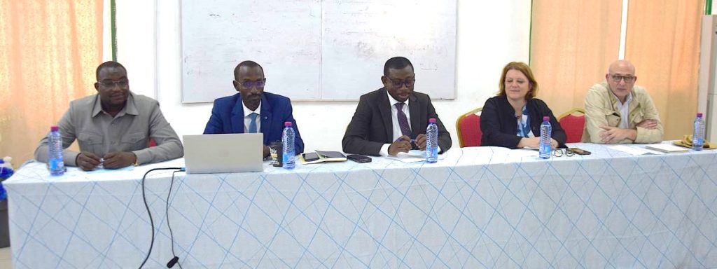 Photo l’équipe en charge de l’atelier avec la Directeur Général représenté ici par le Directeur des Affaires Académiques et de la Scolarité, Dr. DANVIDE (milieu photo)